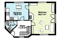 Innovative Materialien und hochwertigste Verarbeitung sorgen für Langlebigkeit und optimales Raumklima zum „Wohlfühlen“. Im Erdgeschoss bieten die geräumige Wohn-Küche und das Wohnzimmer auf etwa 54 m² genügend Platz für eine familiäre Kommunikation und Behaglichkeit. Direkt am Wohnzimmer liegt auch die nach Süden ausgerichtete, großzügige Terrasse mit Blick in die Umgebung.