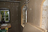 Zum Einsatz kam ein zweischaliges Holzfaserdämmsystem in 80 mm Dicke, welches den Untergrund durch weichen Unterbau bis zu 4 cm ausgleicht. Mit Spezialdübeln, die sich einfach justieren lassen, konnte man die Wand begradigen.
