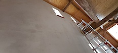 Zum Einsatz kam das UdiReco System von UdiDÄMMSYSTEM - Anbieter. Ein Dämmsystem aus Holzfaser, welches den Untergrund durch weichen Unterbau ausgleicht. Mit Justierdübel befestigt wurde die Innenwand begradigt.