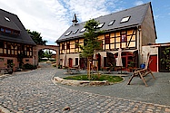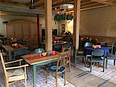 Als zweiter großer Bauabschnitt wurde im Sommer 2010 der Dachausbau des ersten Wohnhauses begonnen und im Sommer 2011 abgeschlossen. Der Umbau des zweiten Gebäudes zur Pension mit Hofcafe, geeignet auch für Seminarbetrieb, wurde 2012 begonnen und im März 2014 abgeschlossen. Im dritten Gebäude befinden sich einfache Unterkünfte z.B. für Schulklassen oder Seminare und Werkstatträume im Erdgeschoss. Die Scheune beherbert unsere Tiergemeinschaft, ist Heu- und Strohlager und zumindest in der Weihnachtszeit auch Ort unseres alljährlichen Christgeburtsspiels.