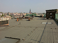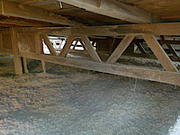 Zu den aufwändigem Umbaumaßnahmen im antiken Dachstuhl aus der Gründerzeit gehört eine offen aufgeblasene Dämmschicht aus hochwertiger Zellulose. Damit entstand eine lückenlose Wärme- und Hitzedämmschicht, die sich problemlos allen Unebenheiten und Sonderanschlüssen im verwinkelten Dachraum anpasste. Sehr knifflig war der Materialtransport des Dämmstoffes bis in die oberen Etagen zum Dachraum. Die Lösung war eine leistungsstarke Einblasmaschine, die ausreichend Ausdauer bewies und damit für einen schnellen Bauablauf sorgte.