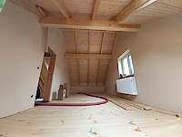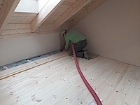 Die Wärmedämmung wird mit unserer eigenen, speziellen Einblasmaschine ohne Mühen und ohne Zuschnitte über die Einblasschläuche einfach nach oben transportiert.