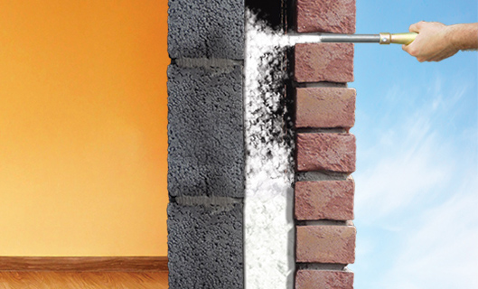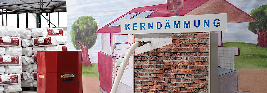 Die leere und ungedämmt Schicht zwishcen den beiden Mauerebenen kann nachträglich mit einem feuchtebeständigem Dämmstoff gedämmt werden. Wir verwenden dazu den rein mineralischen Dämmstoff