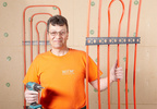 So kann nach den Erfahrungen der WEM Wandheizungsspezialisten erheblich Energie eingespart werden, weil mit 50 % der Vorlauftemperaturen gegenüber herkömmlichen Heizkörpern gearbeitet werden kann. Durch die Erwärmung der Wände wird die Luft- und damit die Staubverwirbelung im Raum vermindert – ein echtes Plus für Allergiker. In Verbindung mit Lehmputz wird zusätzlich das Raumklima verbessert. Zudem kann das System sehr schnell auf Temperaturschwankungen reagieren durch kurze und effiziente Transportwege des temperierten Wassers. Übrigens können Sie kleinere Möbelstücke und offene Regale problemlos vor die beheizten Wände stellen. Und falls Sie mal etwas aufhängen wollen, lokalisieren Sie die Rohre mit einer Thermofolie und bohren dann einfach dazwischen. Ästhetischer Pluspunkt: Schöne Wände ohne störende Heizkörper. Wandheizungen sind prinzipiell für jedes Haus geeignet, ob Neubau oder Sanierungsobjekt. Der Bedarf an Heizfläche ist abhängig mehreren Faktoren. Der Hersteller WEM und seine Partner vor Ort beraten und kalkulieren kostenlos und unverbindlich.
