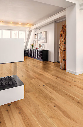 Unsere Parkettsorten und Verlegearten reichen von XXL - Landhausdielen in zum Beispiel 19,8 cm Breite x 2,39 m Länge, Schiffsböden, französisch Fischgrät und Hochkantlamelle XS in excellenter Präzision.