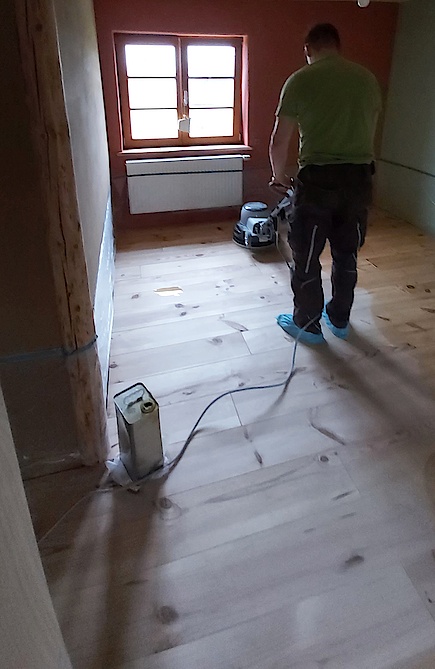 Wir verwenden zur Endversiegelung natürliche Fußbodenöle oder Fußbodenhartwachsöle aus Bienenwachs und Leinöl.