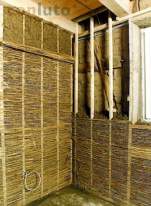 Eine mögliche Innendämmung von sichtbaren Fachwerkkonstruktionen ist die Hinterfüllung mit Leichtlehmmischungen. Der Lehm ist das Bindemittel für die mineralischen oder organischen Leichtzuschläge. Die Leichtzuschläge bieten die gute Isolierung und der Lehm speichert eindringende Feuchtigkeit aus der Wetterseite oder auch von innen und gibt es bei warmen und windigen Tagen schnell wieder ab. Wir bieten fertige Leichtlehm - Mischungen als Verfüllmaterial an, welches zwischen einem Ständerwerk eingestopft wird.